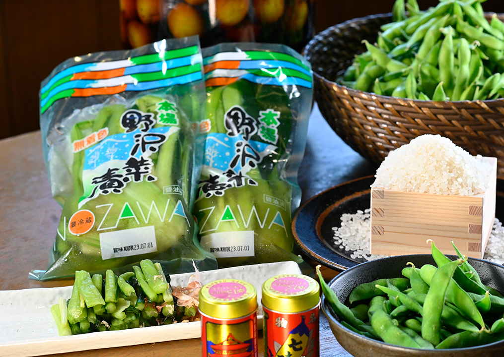この清らかな水を地下100mから汲み上げ、国産野沢菜を漬け込みます。